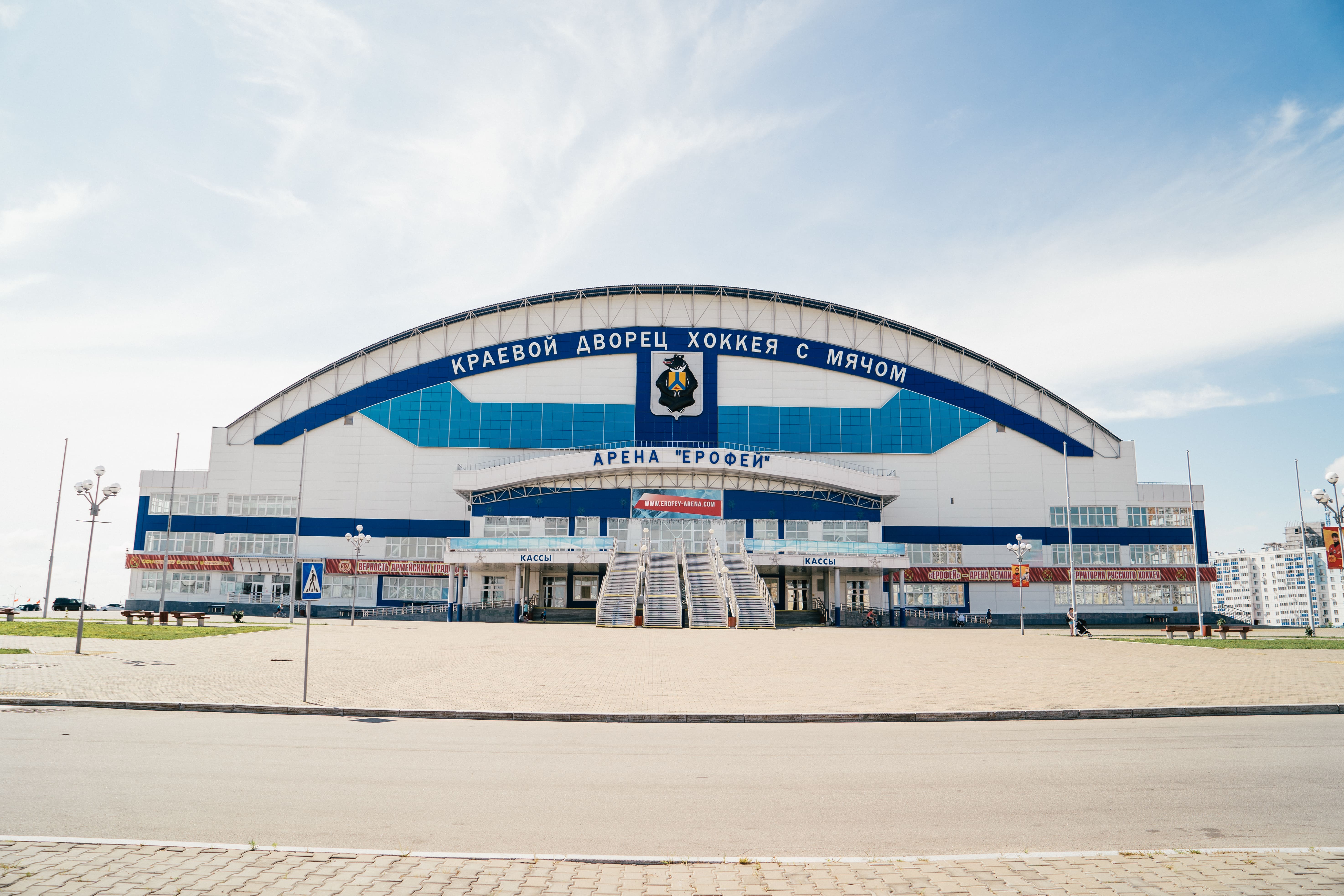 Краевой дворец хоккея с мячом «Арена «Ерофей» представляет собой современное спортивное сооружение на 10 тысяч зрительских мест со всей необходимой инфраструктурой для проведения соревнований всероссийского и международного уровней.